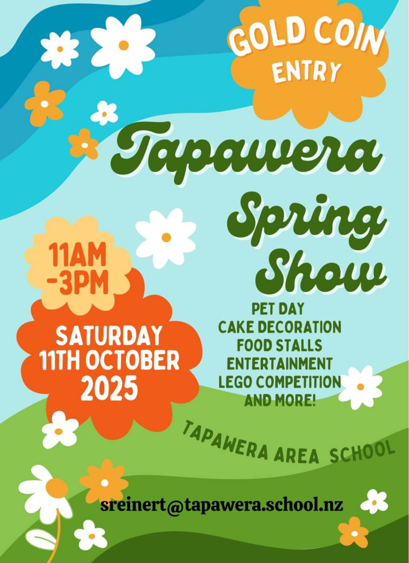 Across the road from 4 Square on the village green, 10am to 2pm Last Sunday of the month Contact Amanda Beer on FB messenger or via the Tapawera and Surrounding Valleys FB page. Bring along your crafts, produce, unwanted items for sale.